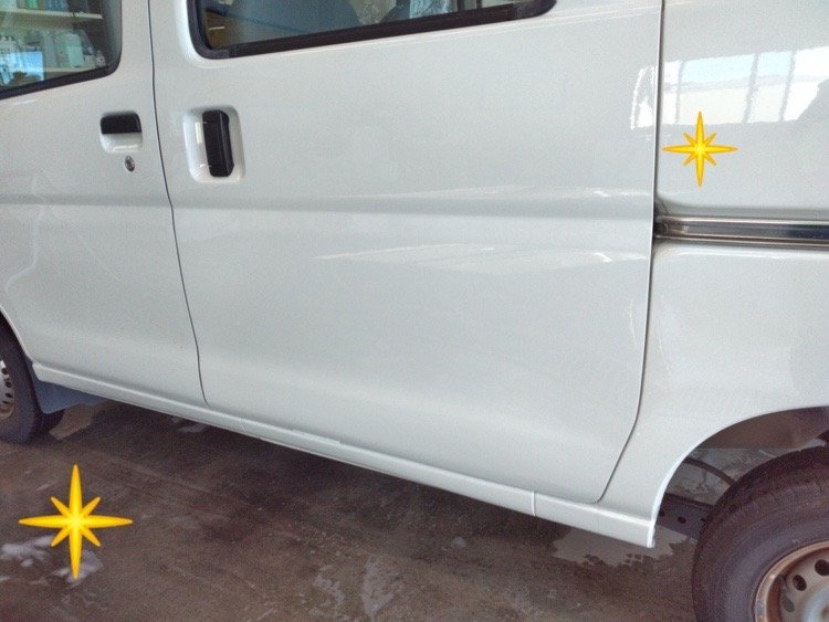 静岡県浜松市東区|ハイゼット(ダイハツ)のキズ・へこみ直し事例(左リヤドア・ロッカーパネル、鈑金塗装修理)