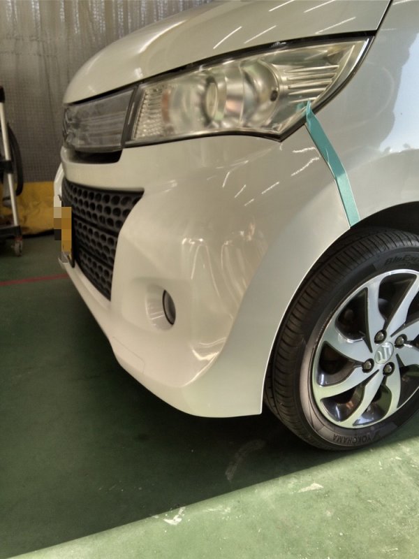 静岡県浜松市東区|ワゴンR スティングレイ(スズキ)のキズ・へこみ直し事例(フロントバンパー修理)