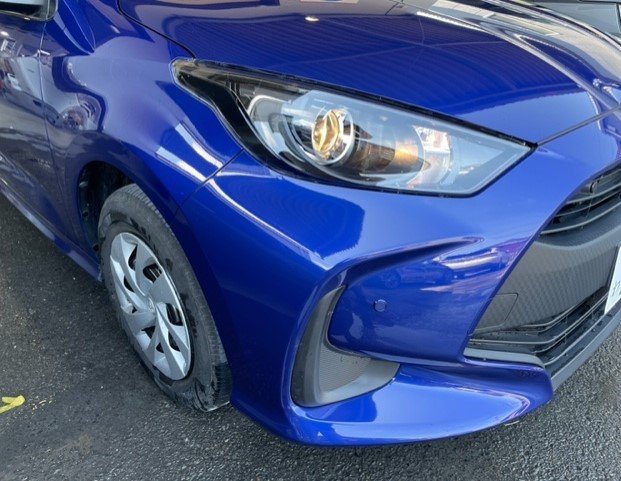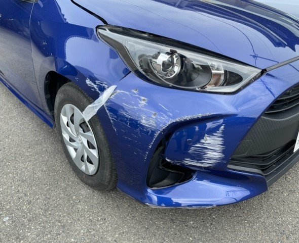 神奈川県川崎市川崎区|ヤリス(トヨタ)のキズ・へこみ直し事例(フロントバンパー・フェンダー(ライト横)損傷大 交換修理)