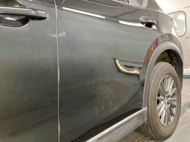 栃木県那須塩原市|CX-5(マツダ)のキズ・へこみ直し事例(左リアドアポール接触へこみキズ 板金塗装修理)
