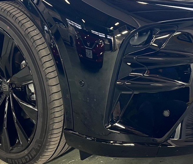 修理後の仕上げとして、キーパーコーティングを施工。コーティングは塗装面を保護し、艶やかな光沢を持続させるための重要な作業です。このコーティングにより、フロントバンパーは新車のような輝きを取り戻しました。