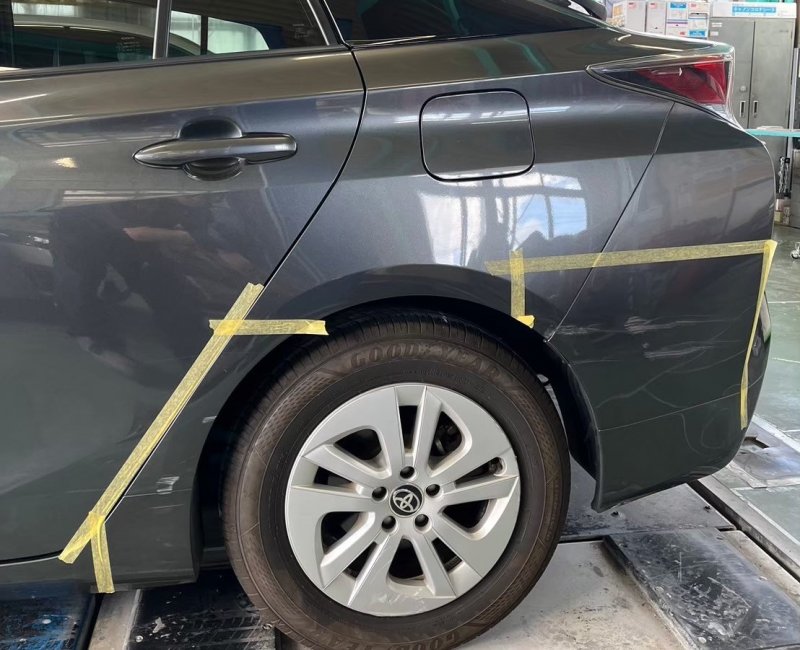 まず、お客様より車の損傷箇所の確認を行い、修理方法についてのご説明をしました。フロントドアの鈑金作業は、へこみやキズがあったため、形状を整えつつ元の状態に近づけるよう調整し、慎重に鈑金処理を実施しました。その後、塗装作業に進み、車体全体の色合いと合わせるために調色を行いました。塗装後は乾燥と磨きの工程を経て、見た目も滑らかで美しい仕上がりとなるよう心がけています。
