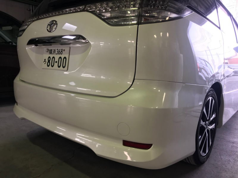 神奈川県伊勢原市|エスティマ(トヨタ)のキズ・へこみ直し事例(トランク(リヤゲート)・リアバンパーすりキズ塗装修理)