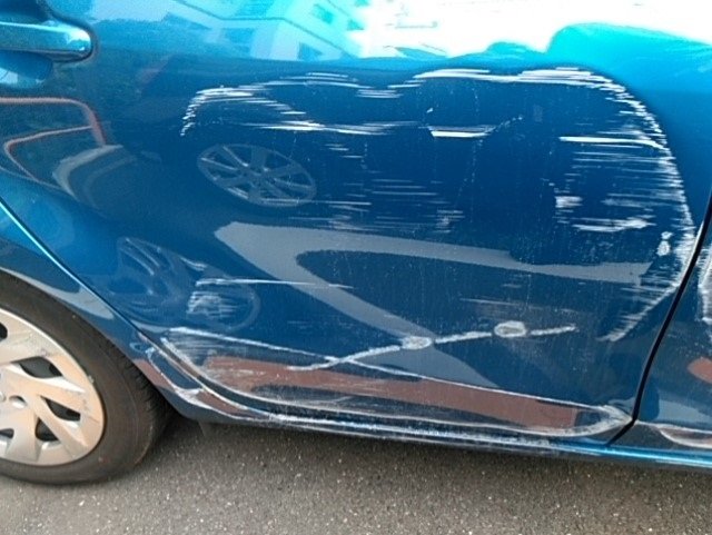 | 修理の箇所・サービス内容 | 前後ドアへこみ大 ドア新品交換・他へこみ傷板金塗装修理 |