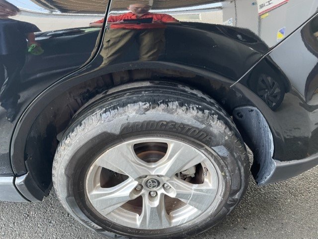 神奈川県相模原市緑区|ハリアー(トヨタ)のキズ・へこみ直し事例(リアドアからリアバンパーにかけて ブロック接触 板金塗装修理)