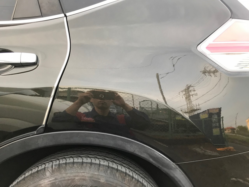 神奈川県相模原市緑区|エクストレイル(日産)のキズ・へこみ直し事例(クォーター(リヤタイヤの上) へこみきず板金塗装)