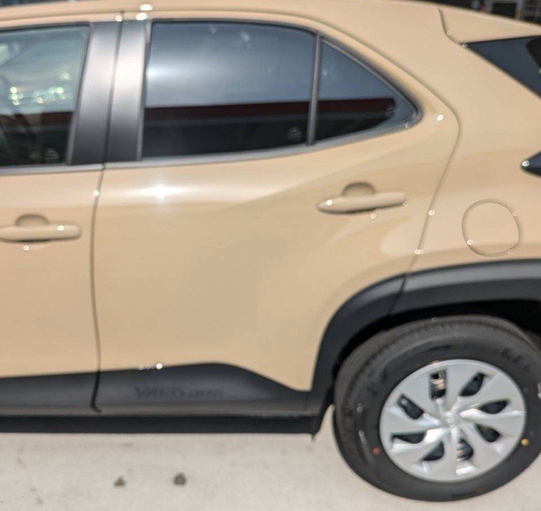 神奈川県相模原市緑区|ヤリスクロス(トヨタ)のキズ・へこみ直し事例(リヤドアへこみキズ 板金塗装修理 モール新品交換)
