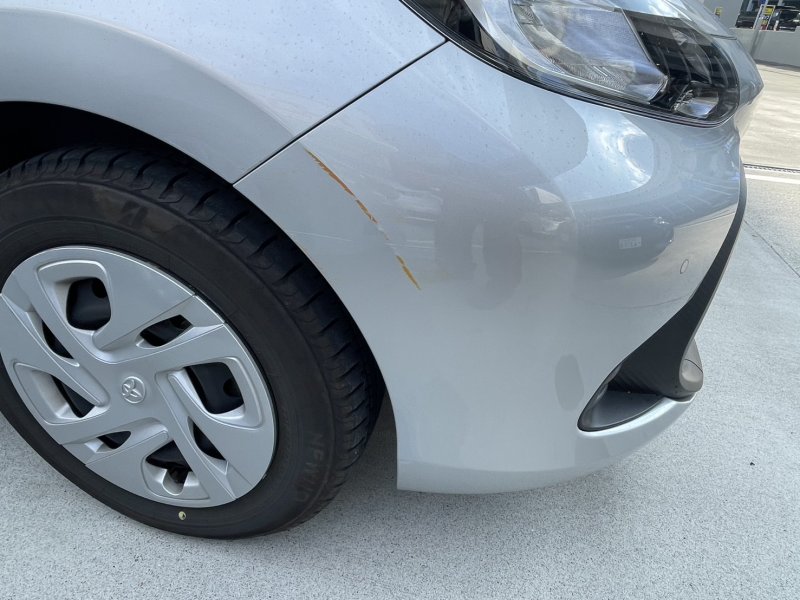 神奈川県相模原市緑区|ヤリス(トヨタ)のキズ・へこみ直し事例(フロントバンパー がりきず塗装修理)