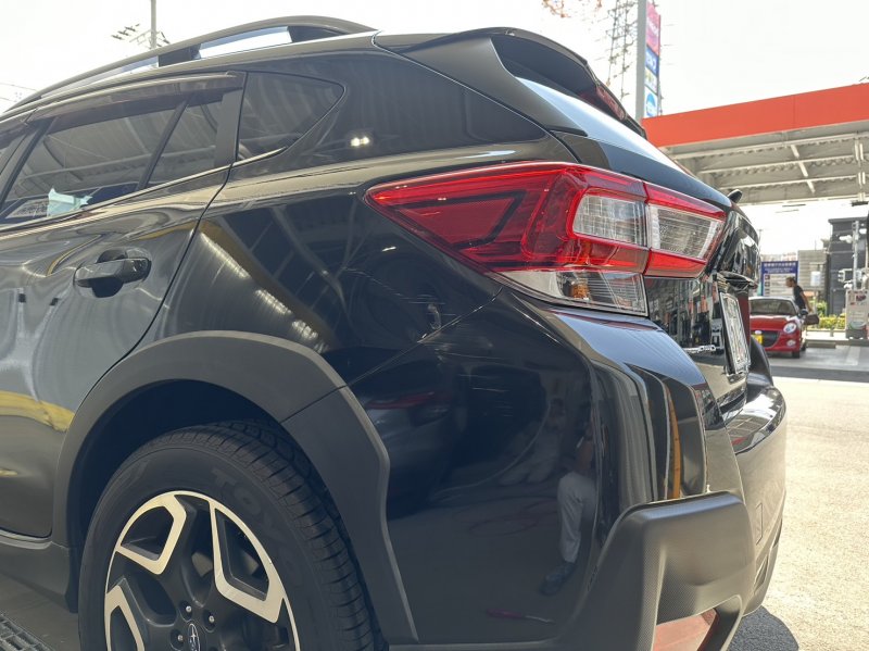 スバル XVの左リヤクォーター、リヤバンパーの鈑金修理です。