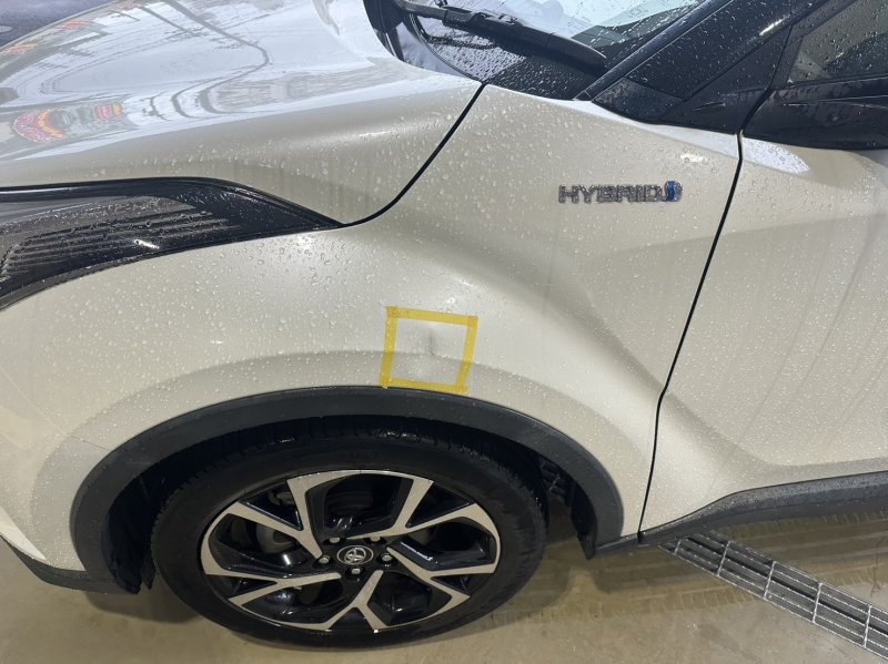 富山県滑川市|C-HR(トヨタ)のキズ・へこみ直し事例(フェンダー(ライト横)へこみきず 板金塗装修理)