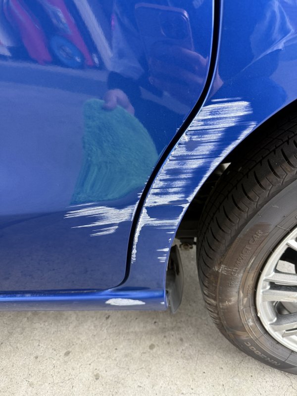 傷の深さや範囲を確認し、必要に応じて軽く鈑金修正を行った後、塗装と磨きによる仕上げを実施しました。