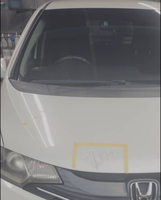 富山県滑川市|フィット(ホンダ)のキズ・へこみ直し事例(ボンネット凹み修理)