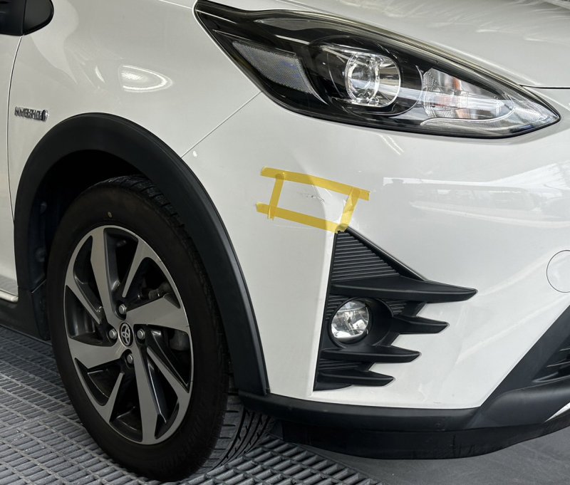 石川県金沢市|アクア(トヨタ)のキズ・へこみ直し事例(フロントバンパー補修。)