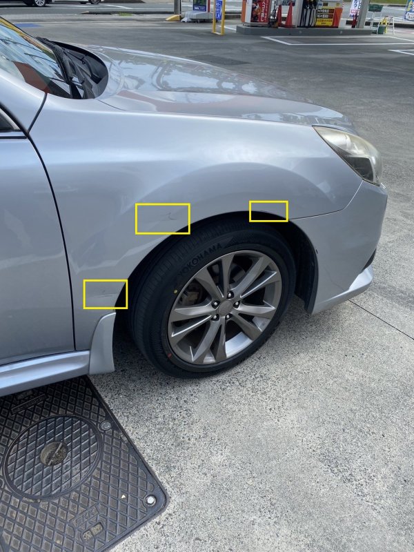 静岡県袋井市|レガシィ(スバル)のキズ・へこみ直し事例(フロントフェンダーに3ヶ所ヘコミキズ)