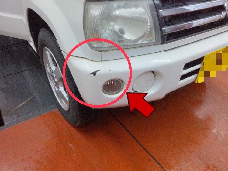 静岡県浜松市中区|パジェロミニ(三菱)のキズ・へこみ直し事例(フロントバンパー修理)