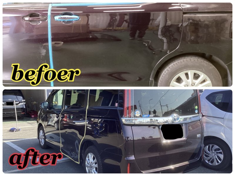 静岡県浜松市中央区|ノア(トヨタ)のキズ・へこみ直し事例(リアドア補修)