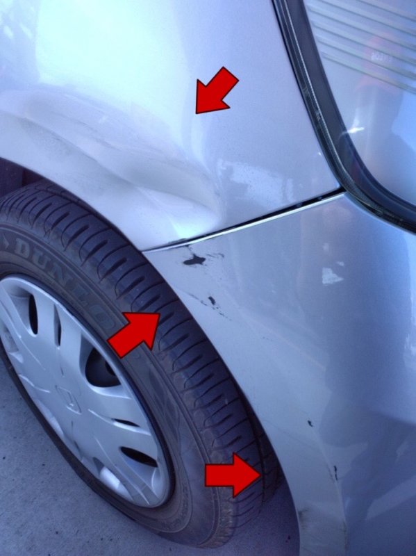 フェンダーにはへこみがあり、大きさは約34cmほど。