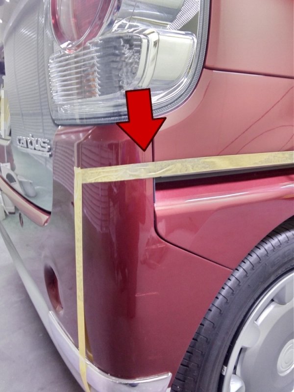 静岡県浜松市中区|ムーブキャンバス(ダイハツ)のキズ・へこみ直し事例(リヤバンパー修理、右クォーター鈑金塗装)