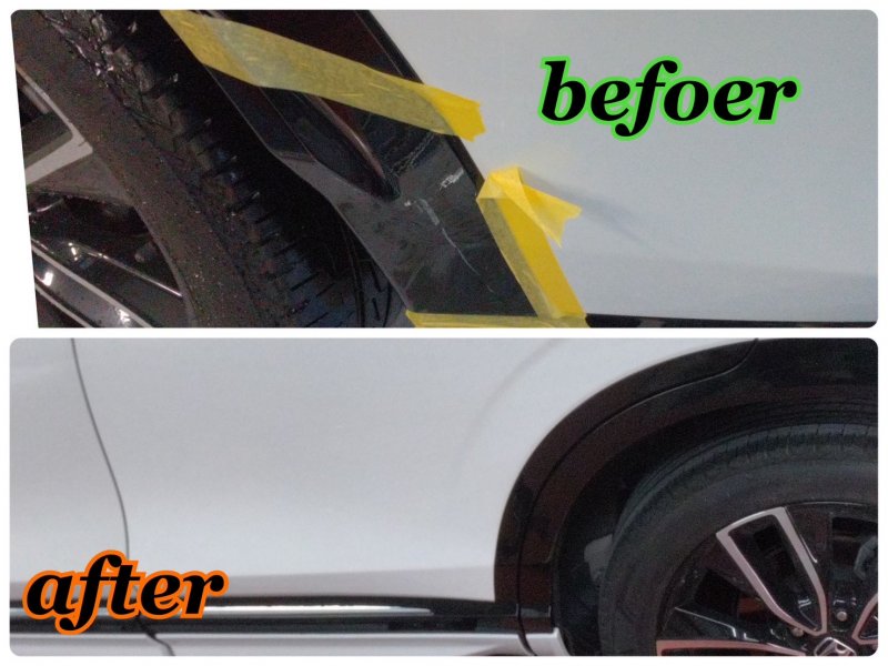 どちらも損傷部の塗装を取り、きちんとへこみを引き出し、形を整えてから、周りと馴染むように塗装しています。