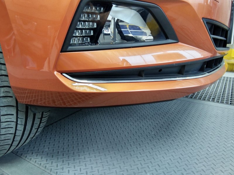 静岡県浜松市中央区|ポロ(フォルクスワーゲン)のキズ・へこみ直し事例(フロントバンパー修理)