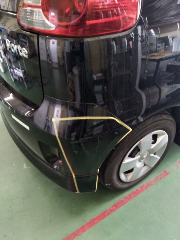 静岡県浜松市中央区|ラパン(スズキ)のキズ・へこみ直し事例(右リヤフェンダー・リヤバンパー修理)