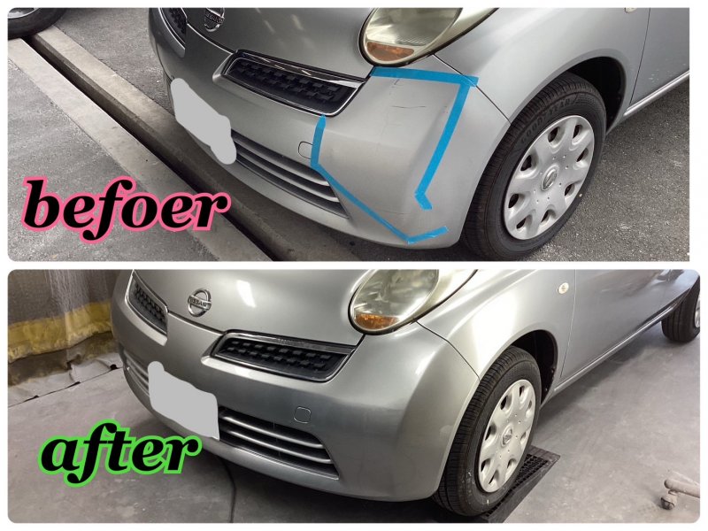 静岡県浜松市中央区|マーチ(日産)のキズ・へこみ直し事例(フロントバンパー 補修)