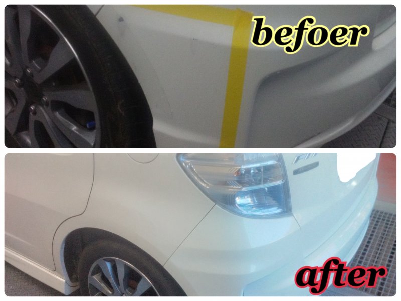 静岡県浜松市中央区|フィット(ホンダ)のキズ・へこみ直し事例(リアバンパーキズ補修)