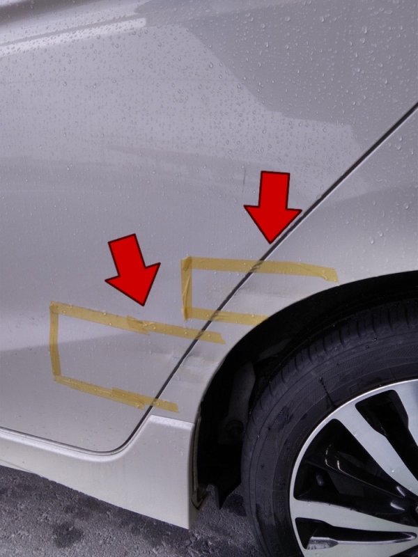 リヤドアとクォーターパネルの2つにまたがってキズが付いています。