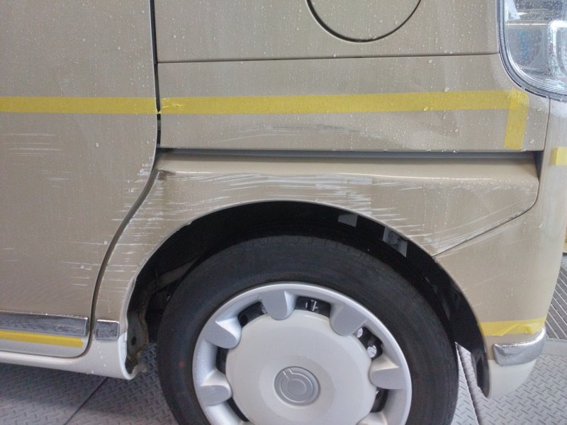 愛知県豊橋市|ムーブキャンバス(ダイハツ)のキズ・へこみ直し事例(左リヤドア・左リヤフェンダー・リヤバンパー修理)