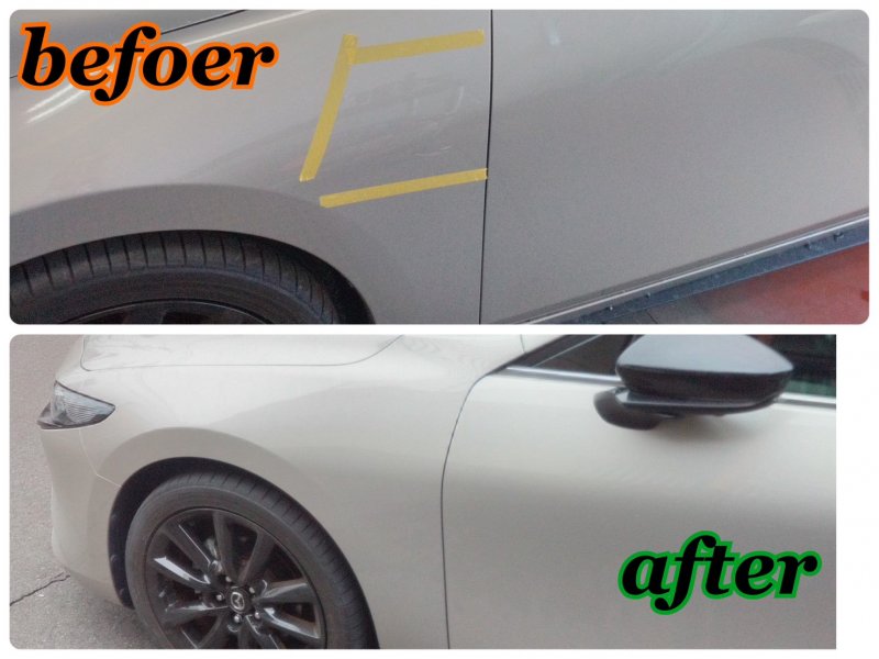 愛知県豊橋市|マツダ3(マツダ)のキズ・へこみ直し事例(フロントフェンダー補修)
