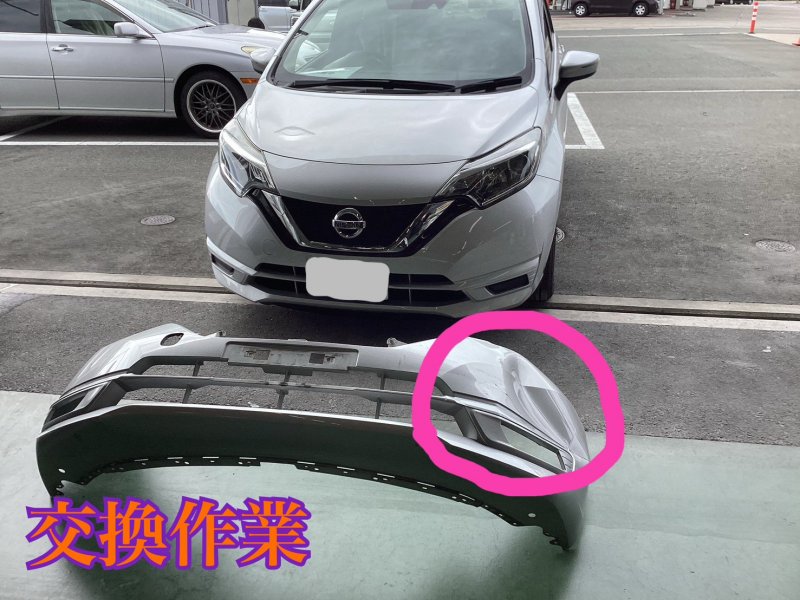 愛知県豊橋市|ノート(日産)のキズ・へこみ直し事例(フロントバンパー交換)