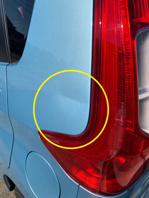 滋賀県甲賀市|デイズ(日産)のキズ・へこみ直し事例(リヤフェンダー(給油口付近)へこみ傷 板金塗装修理)