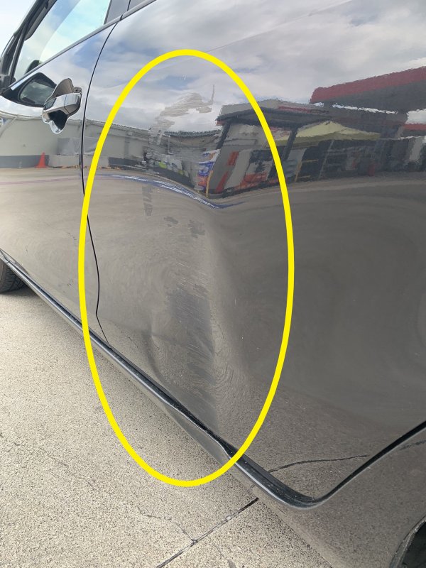| 修理の箇所・サービス内容 | リアドア・サイドシル(ドアの下パネル) ポール接触大きなへこみ 板金塗装修理 |