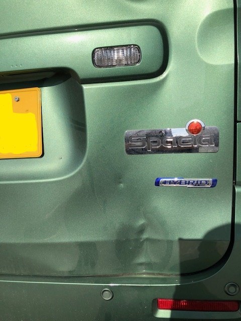 滋賀県東近江市|エスクァイア(トヨタ)のキズ・へこみ直し事例(リアゲート(トランク)へこみ 板金塗装修理)
