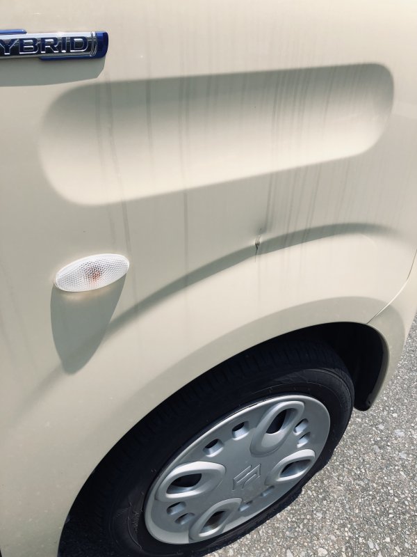 佐賀県三養基郡基山町|スペーシア(スズキ)のキズ・へこみ直し事例(右フロントフェンダー)