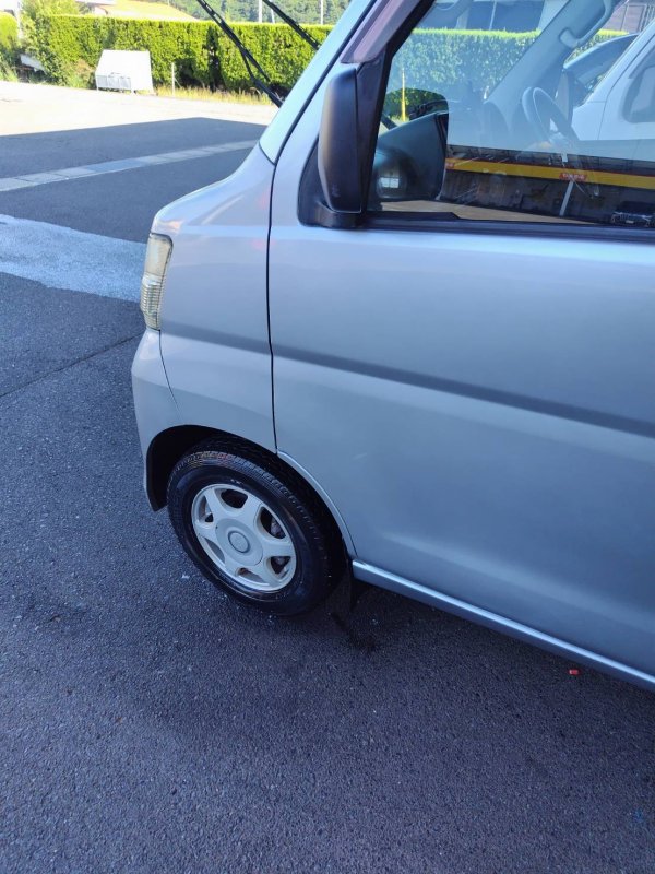 アトレーのフロントフェンダーおよびフロントドアに、キズやヘコミが確認されたためご入庫いただきました。