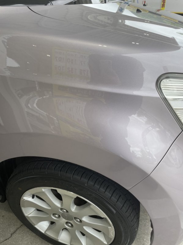 佐賀県佐賀市|アクア(トヨタ)のキズ・へこみ直し事例(左後ろドア タイヤ前(フェンダー) 板金塗装修理)