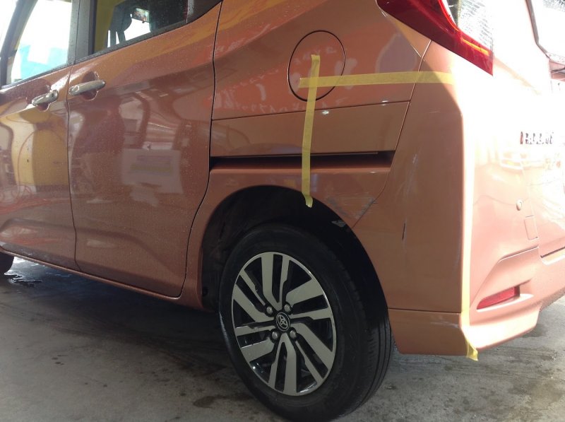 佐賀県佐賀市|ライズ(トヨタ)のキズ・へこみ直し事例(左リアドア クオーターパネル キズ ヘコミ 鈑金修理)