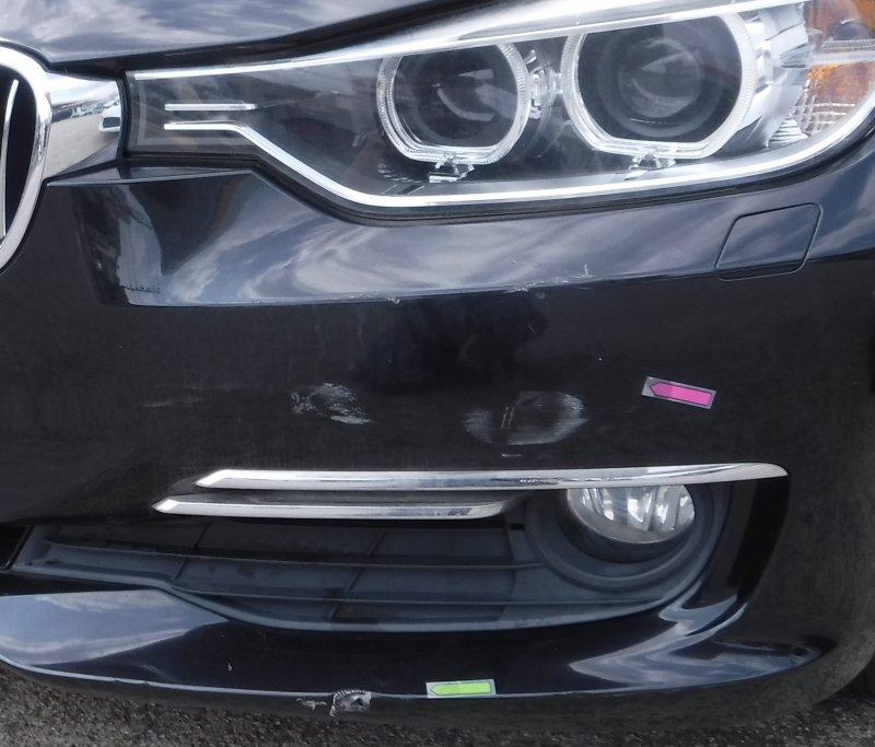 兵庫県神戸市東灘区|523d F10(BMW)のキズ・へこみ直し事例(輸入車のフロントバンパーきず 塗装修理)