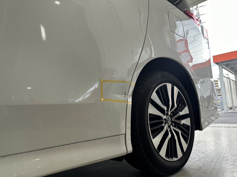 今回ご紹介するのは、 アルファード!ドアとフェンダーの狭間にキズ・へこみがございました。