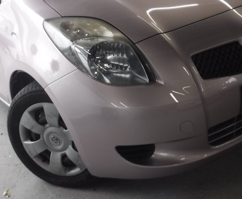 トヨタヴィッツ、フロントバンパーとフェンダーの鈑金修理です。