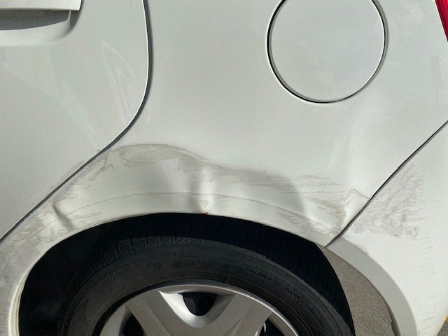 リアフェンダー(リヤタイヤ上) ポール接触へこみ 塗装修理