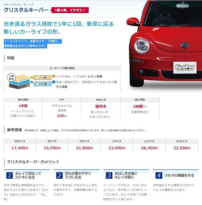 | 修理金額 | クリスタルキーパー/17,400円(税込)~ |