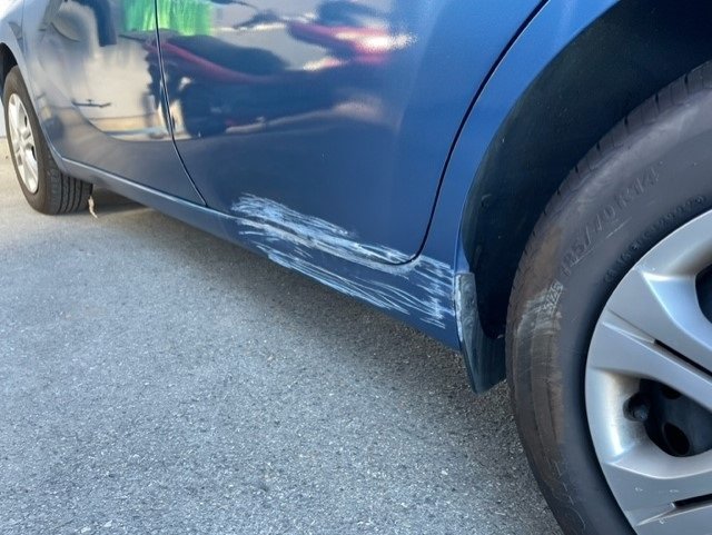 | 修理の箇所・サービス内容 | リアドア・サイドシル(ドアの下パネル) 縁石接触へこみ大 板金塗装修理 |