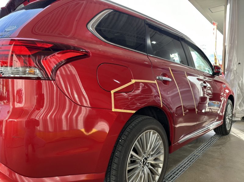 パーツを交換してしまうと高額になってしまいますが、弊社の自社工場では充分鈑金・塗装にて修理できるということでお任せいただきました。