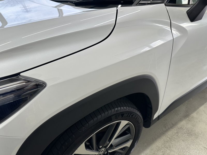 今回は「トヨタ カローラクロス」の左フロントフェンダーのキズ・へこみの修理を行いました。