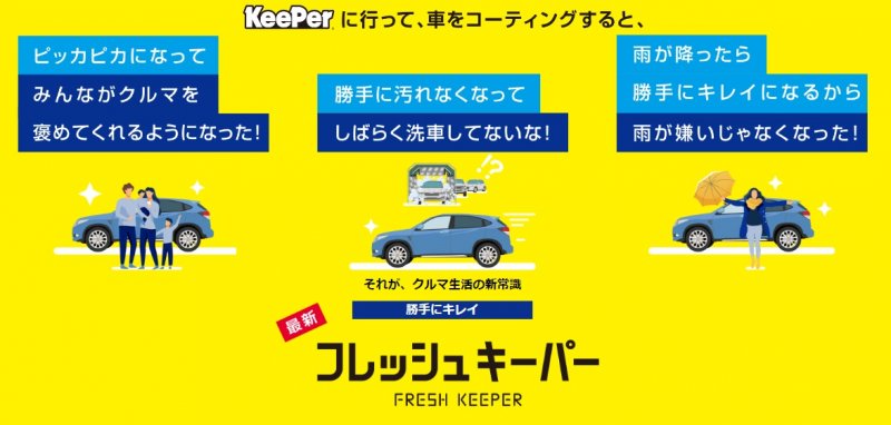 フレッシュキーパーは、汚れの密着を防ぐ独特な防汚能力を持ち、ホコリが降り積もっても塗装表面には密着せず、自然の雨が降れば元々持っている撥水力で、雨と一緒に汚れが流れ落ち、まるで洗車をしたかのようにキレイになります。