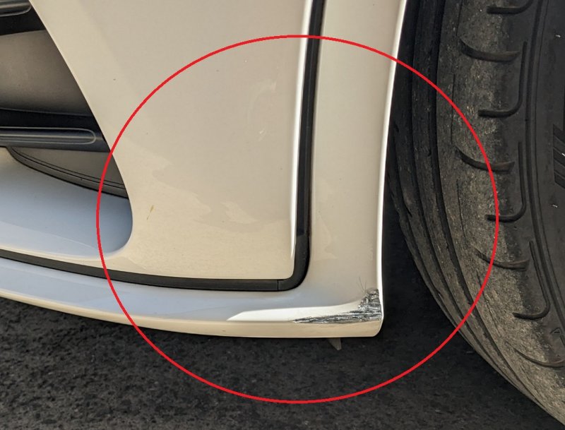 お車を確認させて頂くと、フロントバンパーとリアバンパーの左側面に擦り傷が付いていました。