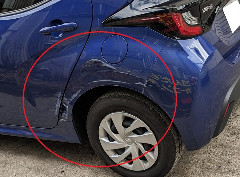 【成田市・富里市・香取市・匝瑳市・旭市】 ヤリス 左後ろドア/左クォーター/リアバンパー キズへこみ修理
