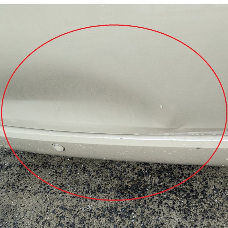 お車を確認させて頂くと、バックドアの左側部分に大きなへこみが付いていました。その下のリアバンパーもキズが付いていました。